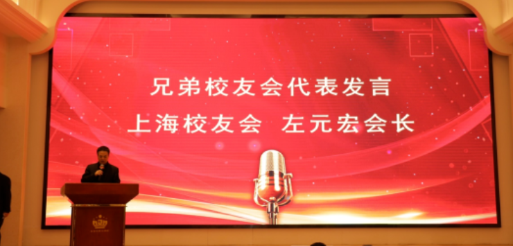 来自上海校友会的代表左元宏会长,作为兄弟校友会的代表上台致贺词。他对本届年会予以真挚的祝贺,并且对未来校友之间的合作交流互通充满信心。