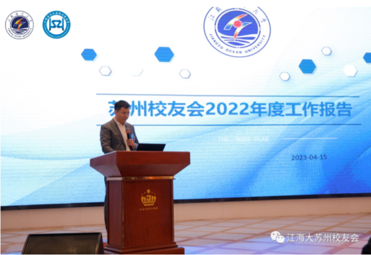 年会以全体校友起立、奏校歌的形式正式拉开序幕。随后由苏州校友会会长解昌海作工作报告。解昌海会长对2022年度苏州校友会的活动和取得的成绩作出总结汇报,对校友会财务进行了公开公示,对2023年度工作计划做了部署。