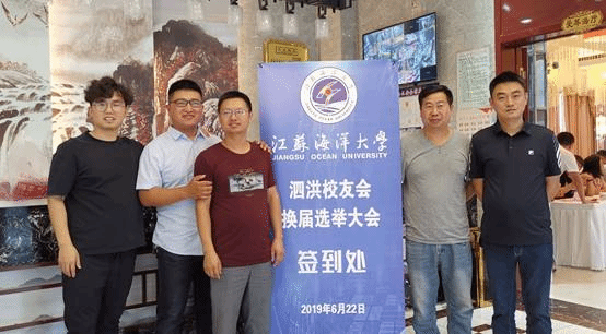 6月22日下午,泗洪校友欢聚一堂举行校友会换届大会,这是江苏海洋大学自更名以来首个地方校友会的换届大会,来自上海、福建、苏州、无锡、南京、扬州、泰州、徐州、宿迁、淮安、盐城、连云港、昆山等地的校友会代表到会祝贺,江苏海洋大学校友总会会长刘永强、副会长李明、校友会副会长兼秘书长孙盛杰、校友会办公室主任孙韶及学校赴宿迁招生组部分教师代表应邀出席活动。