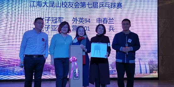 今年的年会活动首先从校友乒乓球比赛开始,30多位校友乒乓球爱好者兴致勃勃地参加了本次比赛,经过紧张激烈的三轮比赛,来自南京、河北的校友满亮、杨华杰分别获得男子单打冠、亚军,来自昆山的校友申春兰、张兵分别获得女子单打冠、亚军。之后,根据组委会的安排,从参赛选手中选出四位校友组队与四位教师代表展开了一场友谊比赛,师生同台竞技,欢声连续不断,进一步提升了比赛的欢乐气氛。