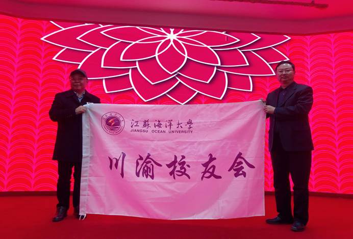 宁晓明校长为江苏海洋大学川渝校友会授旗、授牌。