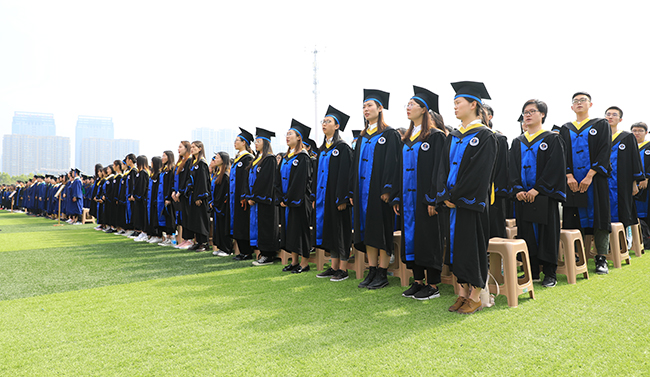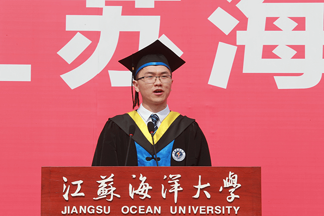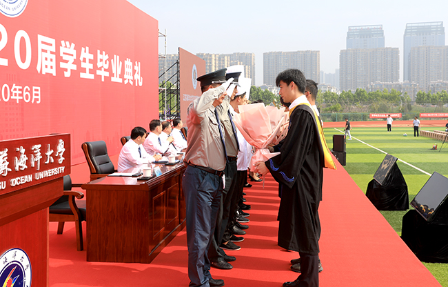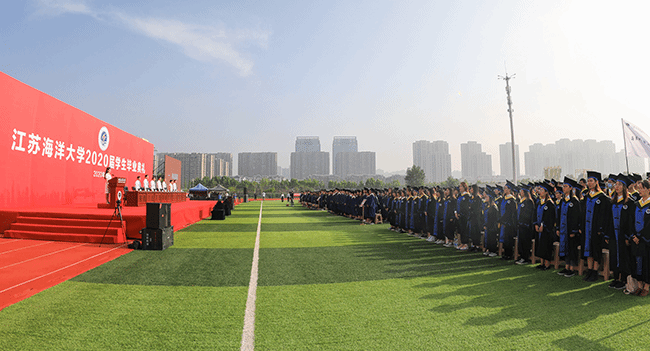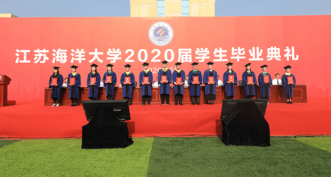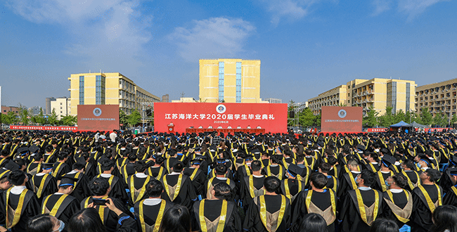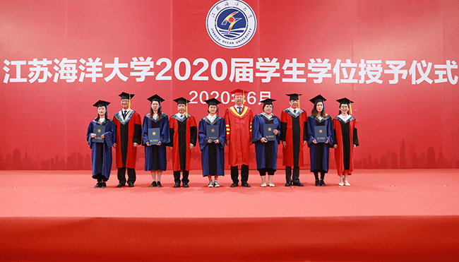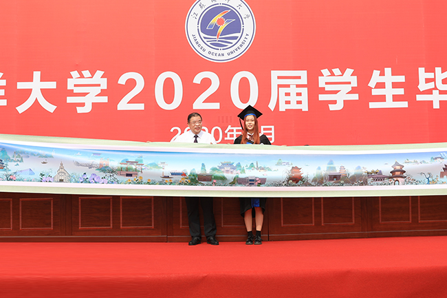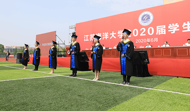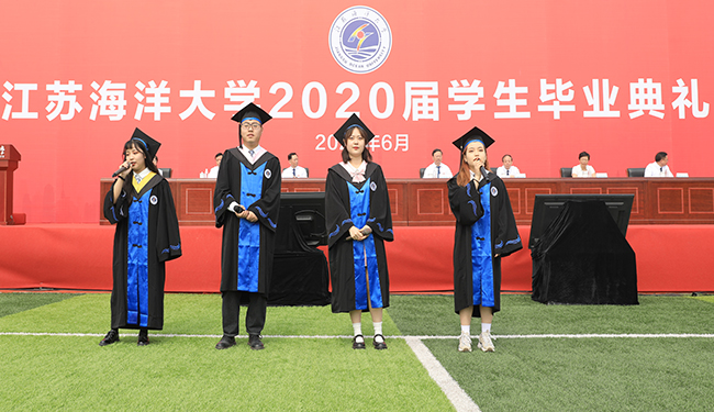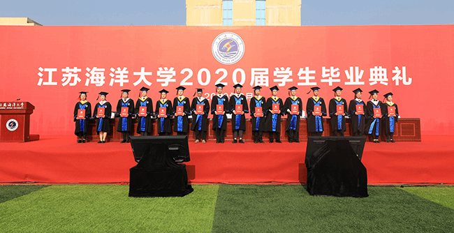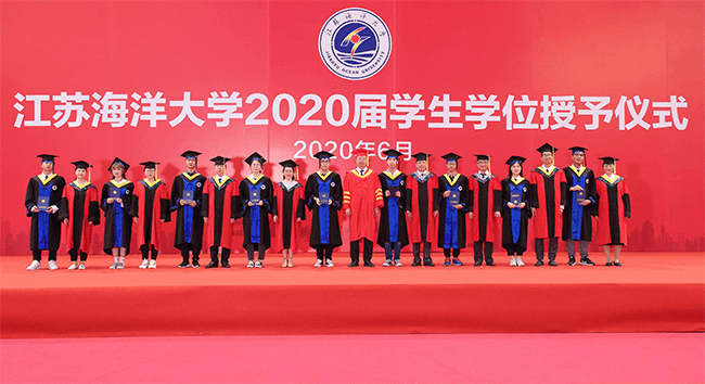 6月19日清晨,天朗气清,惠风和畅。对于即将毕业的150名研究生和5124名本科生而言,这是个值得铭记的日子。经过几代师生的接续奋斗,学校于去年成功更名为江苏海洋大学,今年2020届毕业生是江苏海洋大学的第一届毕业生,为此学校举办了隆重的露天毕业典礼,并在线上同步直播,未返校毕业生在“云端”同步参加毕业典礼。 上午7时30分,在庄严的国歌声中,毕业典礼在苍梧校区西运动场拉开帷幕。全体校领导出席典礼。副校长金芙蓉主持典礼。相关职能部门负责人,各学院党政主要负责人、副书记,毕业班班主任、辅导员,毕业班研究生导师,2020届研究生、本科生参加了典礼。 副校长严云洋宣读了《关于准予2020届本科生毕业的决定》《关于授予2020届本科生学位的决定》。 副校长许兴友宣读了《关于准予2020届研究生毕业的决定》《关于授予2020届硕士研究生学位的决定》。 副校长舒小平宣读了《关于表彰2020届优秀本科毕业生的决定》《关于表彰2020届优秀毕业研究生的决定》。 校领导为获奖学生代表颁奖。 在毕业典礼上,校长宁晓明连用四个“想不到”对毕业生送上祝福:“你们可能想不到,在毕业之前,还能赶上宿舍装空调,终于实现了夏天睡觉不流汗、冬天睡觉不发抖的愿望;你们可能想不到,美丽的静思湖这么快就翩然而至,大家从此有了一个学习休闲的好去处,岸边的垂柳倾听着同学们朗朗读书声,湖中的黑天鹅也见证了许多恋人的爱情故事;你们可能想不到,功能完备、设施先进的第四教学区拔地而起,宽阔的大草坪拓展了你们释放情绪的空间,大气的教学楼激发了你们刻苦读书的热情;你们可能想不到,自己会变得这么优秀。”展望未来,宁晓明勉励毕业生:“作为江苏海洋大学第一届毕业生,‘一’这个字注定会成为你们最显眼的标签。因此,我希望2020届毕业生从‘一’开始做起,努力去遇见更好的自己。” 17个学院的院长为同学们送上了美好的“云”祝福。 职工代表、学生宿舍A1号楼的宿管员陈玲质朴感人的发言令在场师生动容。 优秀毕业生、已考取江苏省名校优生连云港地区选调生、电子工程学院刘蕊同学的父亲刘默昌先生,作为毕业生家长代表发言,感谢江苏海洋大学对女儿的精心教育培养。 张启帆、王筱雪、黄铮作为毕业生代表先后发言。机械与海洋工程学院毕业生黄铮家在湖北孝感,因为疫情原因本学期没有返校,他在家一边积极配合抗疫,一边准备考研复试,考取了河海大学机械工程专业研究生,今天他通过视频为母校送来了祝福。 艺术学院2020届毕业生胡嘉琦同学用四年所学,以京杭大运河作为主要元素,选取运河沿岸北京至杭州主要城市的建筑与花卉进行融合设计,历时半年时间,完成了《繁花运河梦》主题长卷插画。毕业典礼上,她将这幅作品捐赠给母校。校党委书记王自力教授代表学校接收胡嘉琦同学赠送的作品。 毕业生代表向工作在学校各条战线上的教职员工代表献上鲜花,对他们四年的陪伴、教育、关爱表示衷心的感谢。 毕业骊歌起,扬帆当远航!在毕业生代表激情的朗诵和深情的歌声中,毕业典礼圆满结束。 随后,全体校领导和研究生在体育馆南门前合影留念。 2020届毕业生学位授予仪式在苍梧校区体育馆举行。校领导以及各学院学位委员会委员依次为2020届学生授予硕士学位、学士学位。