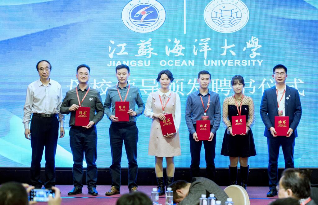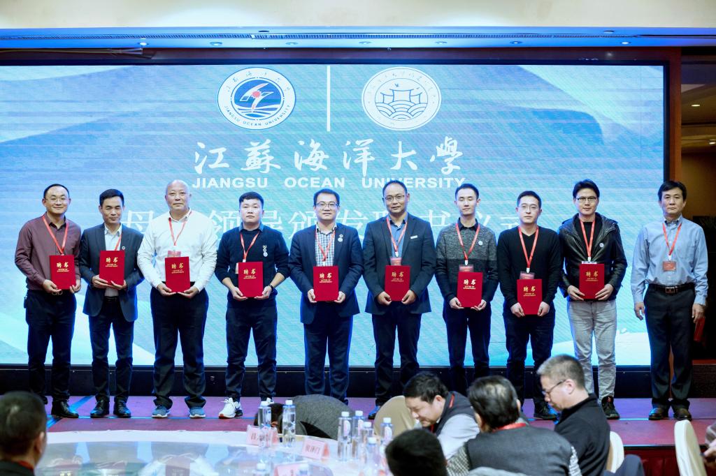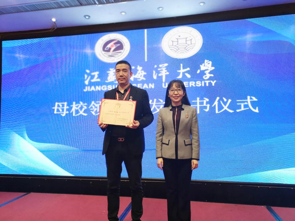 在欢快的进行曲中,金芙蓉副校长向林文胜会长颁发了会长聘书,并向福建校友会授予江苏海洋大学福建校友会会牌和会旗。
