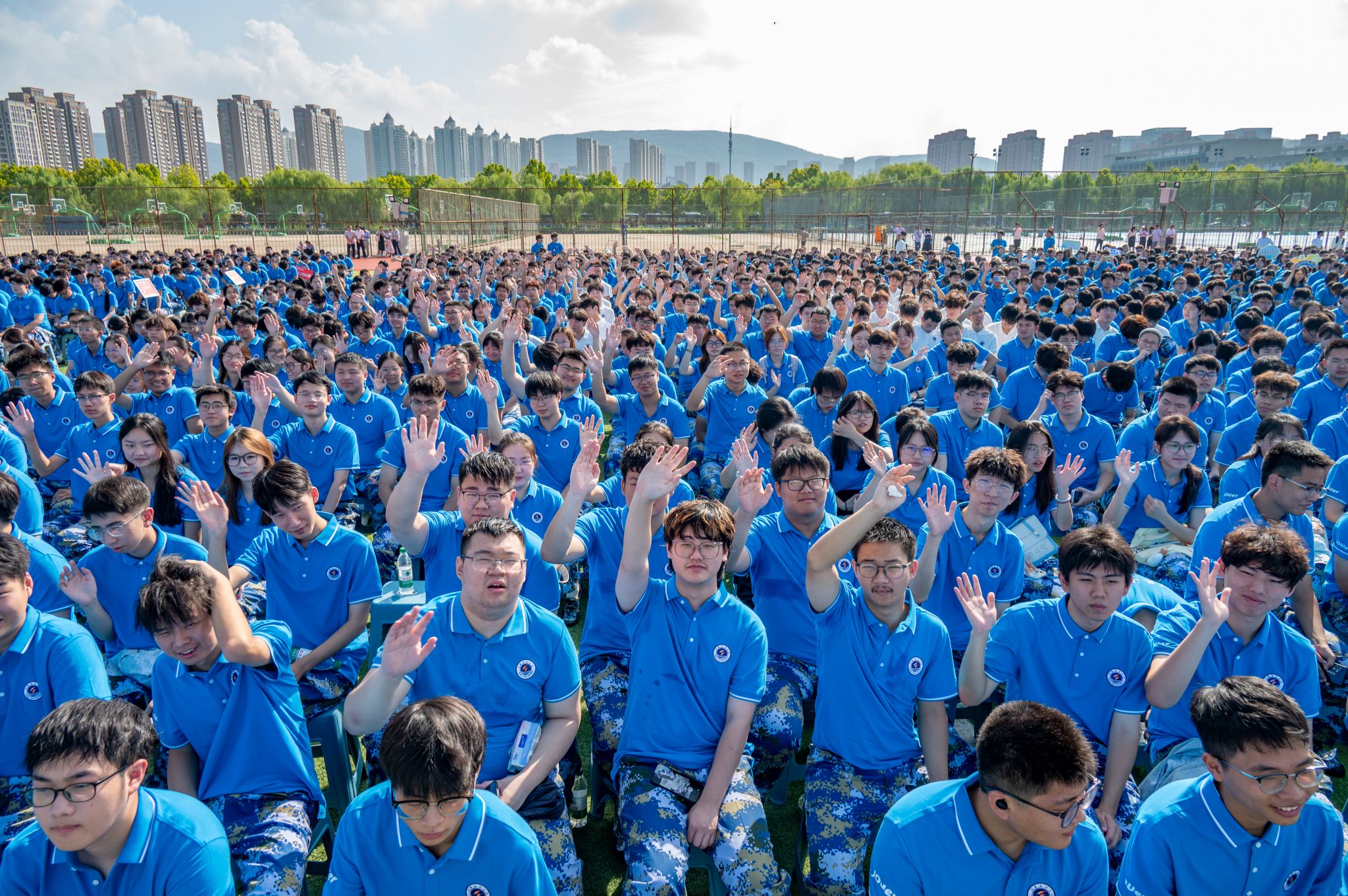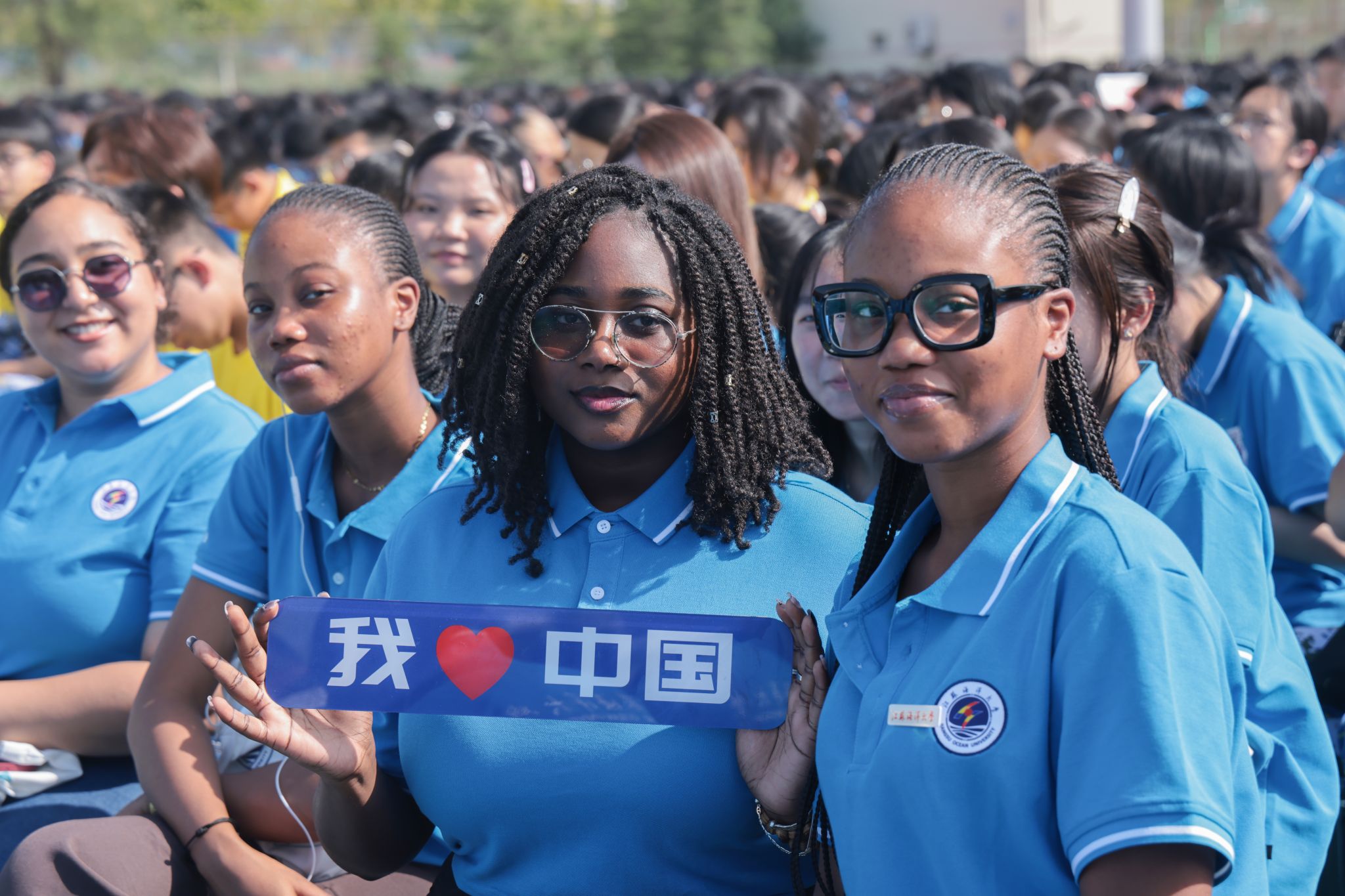 典礼最后,全场师生齐唱校歌《蔚蓝的信仰》。歌声婉转悠扬、穿越晴空,与海大的风声交织,为新生奏响了奔赴深蓝的青春序曲。