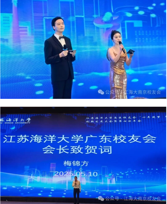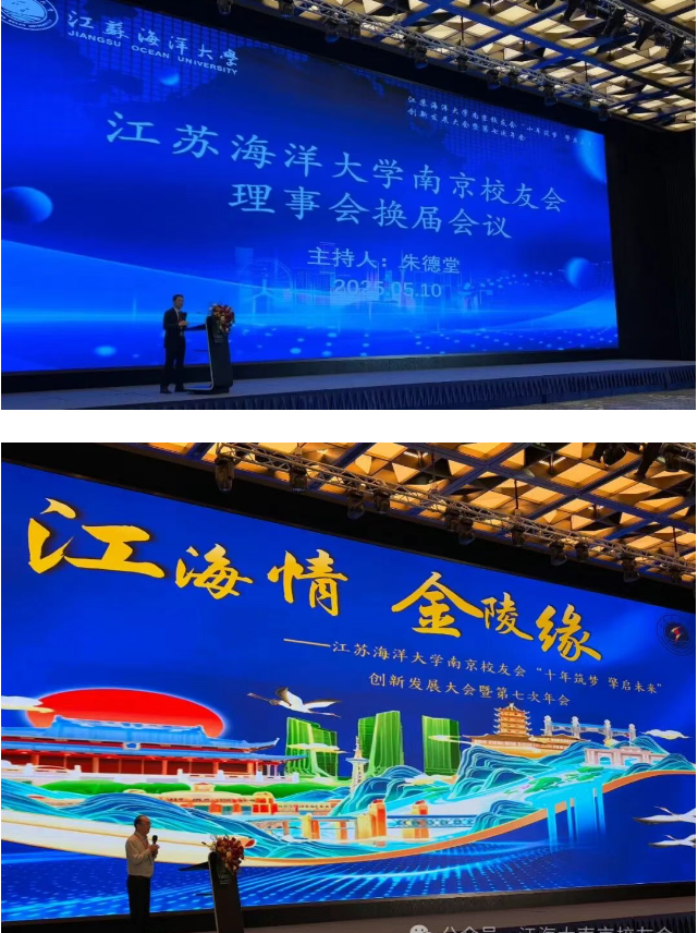 2025年5月10日,江苏海洋大学南京校友会成立十周年创新发展大会暨第七次年会以“十年筑梦,擎启未来”为主题,在南京牛首山希尔顿酒店天阙厅隆重举行。活动吸引了160余名校友、行业专家及企业代表齐聚一堂,再续校友情谊、畅谈创业心得。